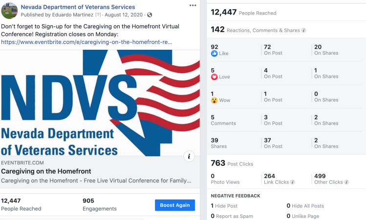 Over 150 people watched the webinar live; another 160 watched it in the years since despite no follow-on promotion. Thousands of Caregiver Support Brochures have been shared with hundreds of continued website visits to the Caregivers Guide landing page.